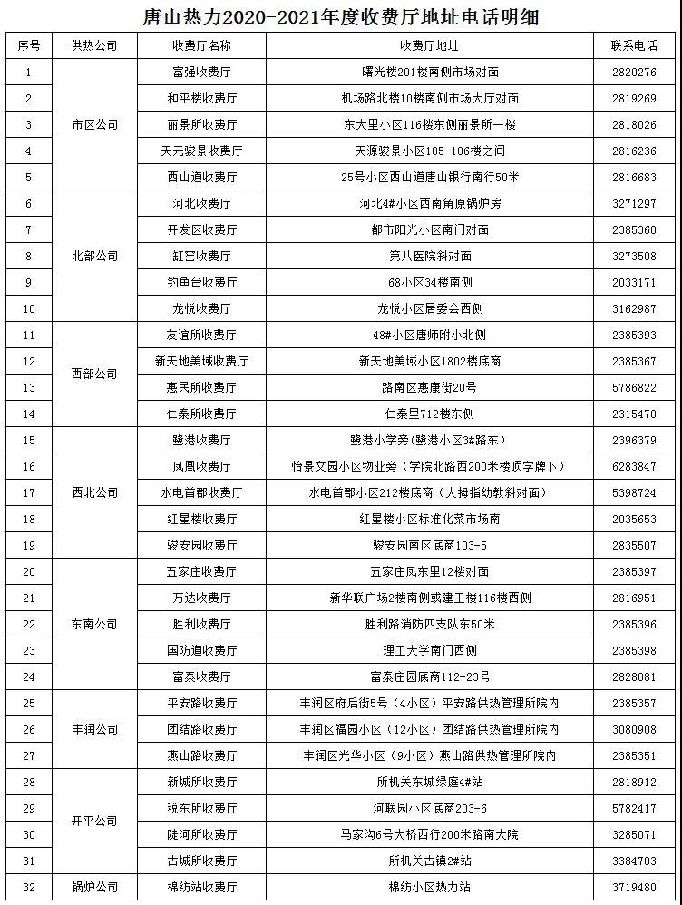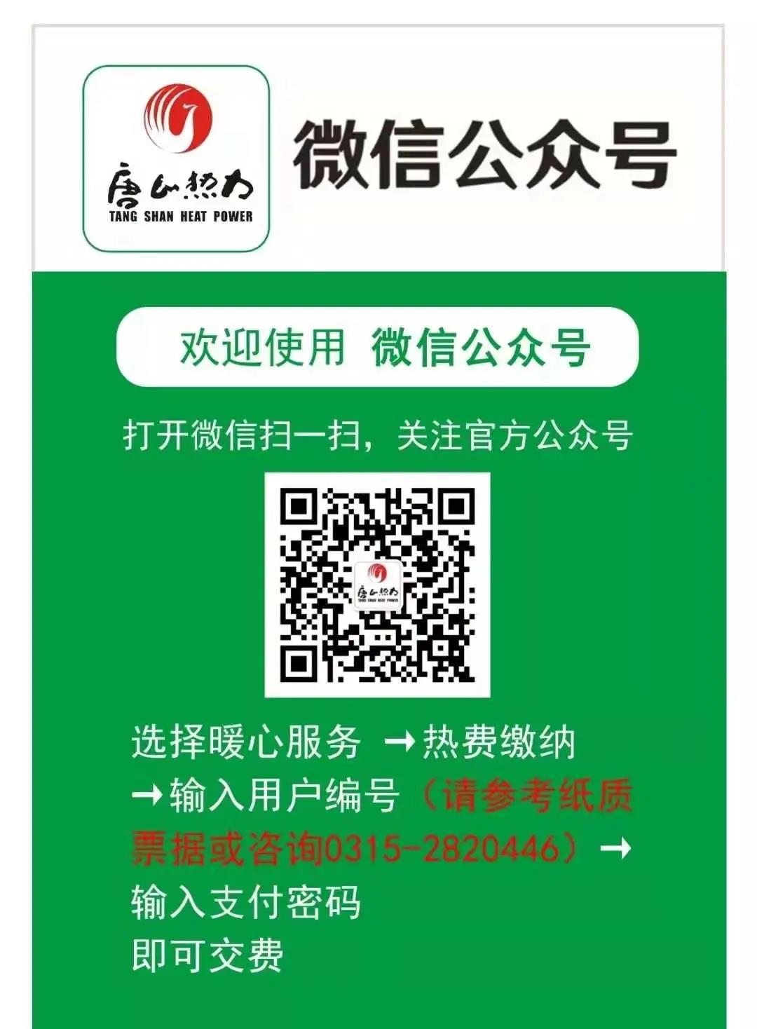 温馨提示7、本年度执行热费滞纳金政策:按照《唐山市供热管理办法》第四十条规定,“当年12月31日之前未交清热费的,供热单位可自次年1月1日起按拖欠热费总额每日加收2‰滞纳金。”