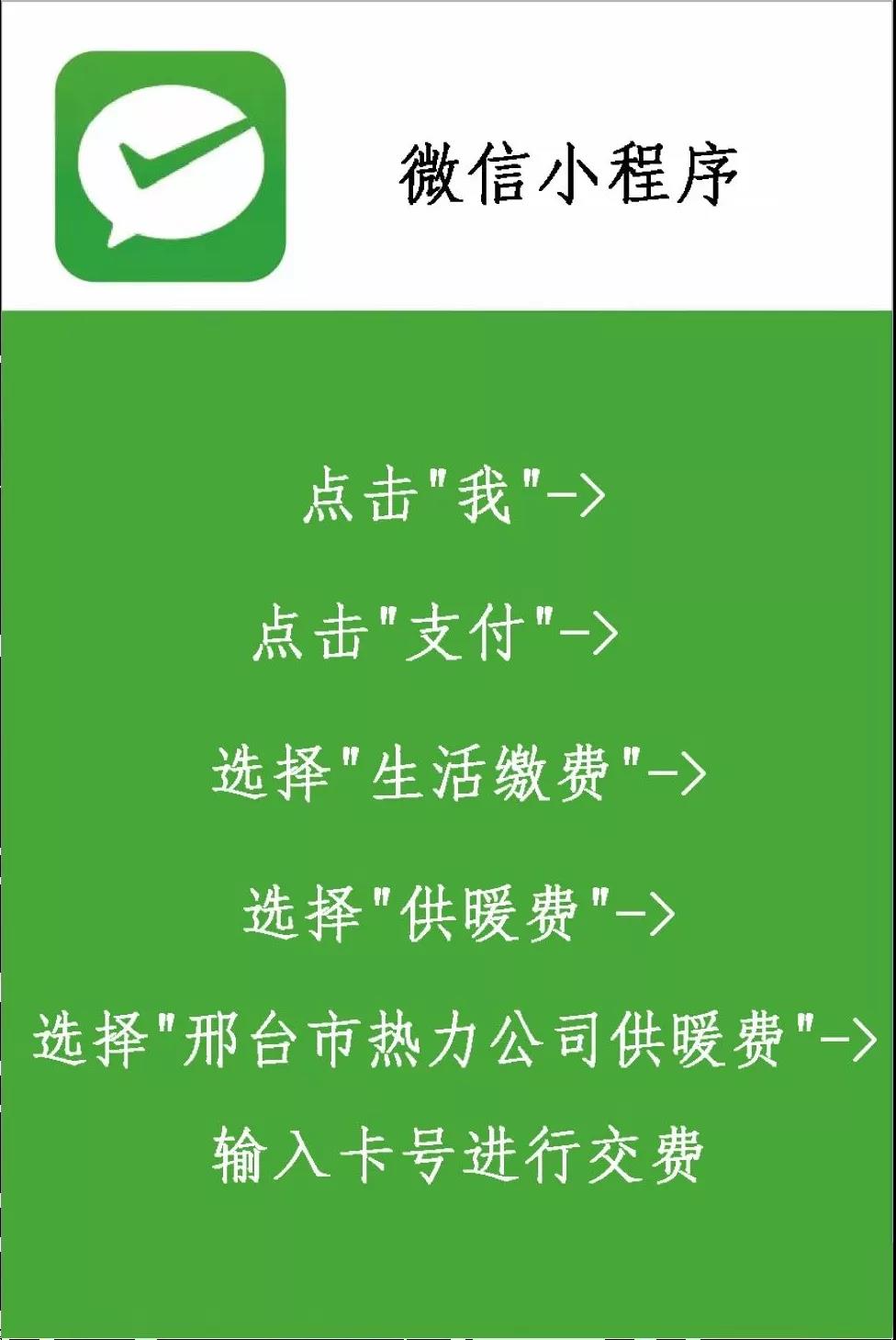(2)微信(关注公众号“中电辛集热力有限公司”-业务办理-供热缴费);
