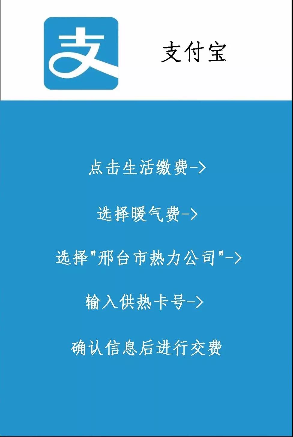 (3)支付宝(生活缴费-暖气费-“中电辛集热力有限公司”)。