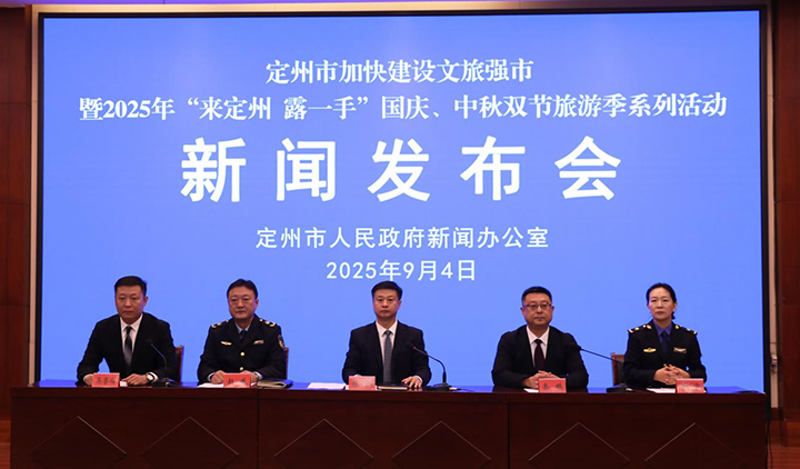 9月4日上午10:00,定州市人民政府新闻办公室举办“定州市加快建设文旅强市暨2025年‘来定州 露一手’国庆、中秋双节旅游季系列活动”新闻发布会。会议由定州市委宣传部常务副部长、市政府新闻办公室主任马誉伯主持,市委常委、常务副市长陈凯同志,市文化广电和旅游局党组书记、局长秦鹏同志,市交通运输局党组书记、局长赵威同志、市城市管理综合行政执法局三级主任科员于宏同志就有关问题进行了发布并回答了记者提问。实录如下: