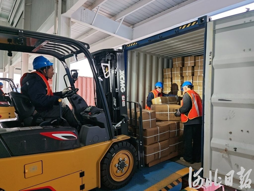 近日,在石家庄国际陆港保税物流中心(B型),工作人员正在进行装箱作业。余陈军摄