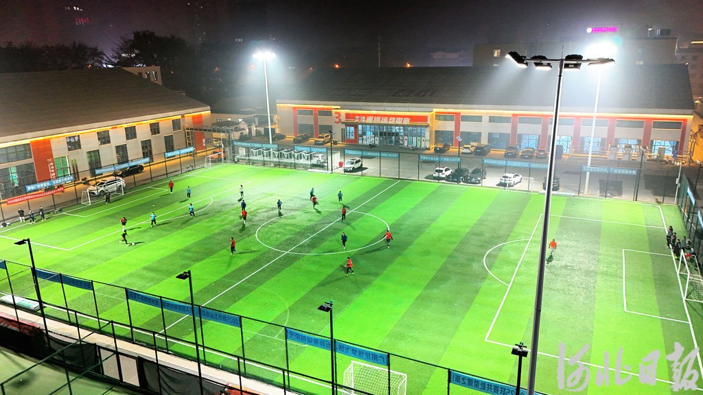 1号馆外,昔日的荒草地被改造成了标准足球场。2025廊坊市五人制足球城市超级联赛曾在这里上演。11月22日至23日,一场由廊坊市工商联直属会员商会主办的足球赛又在这片场地举办。