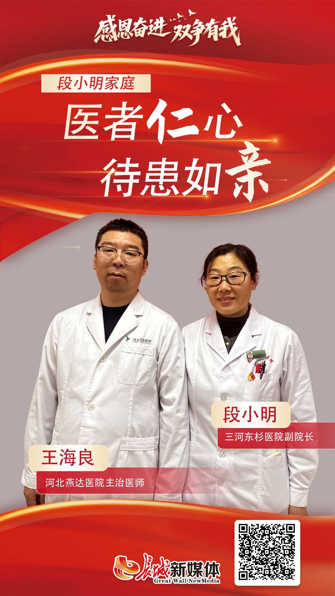他们利用医学专长,扎根在义诊宣教以及健康知识讲座的道路上,他们主动开展针对空巢和独居老人的“居家健康服务”,他们还无偿献血近10000毫升……这就是三河东杉医院副院长段小明家庭,一户“身经百战”的医务工作者之家。他们用坚实的脚步,丈量着从医院到社区、从诊室到居民家的服务半径,将共产党员的忠诚与医者的仁爱,写进平凡岁月的每一天。