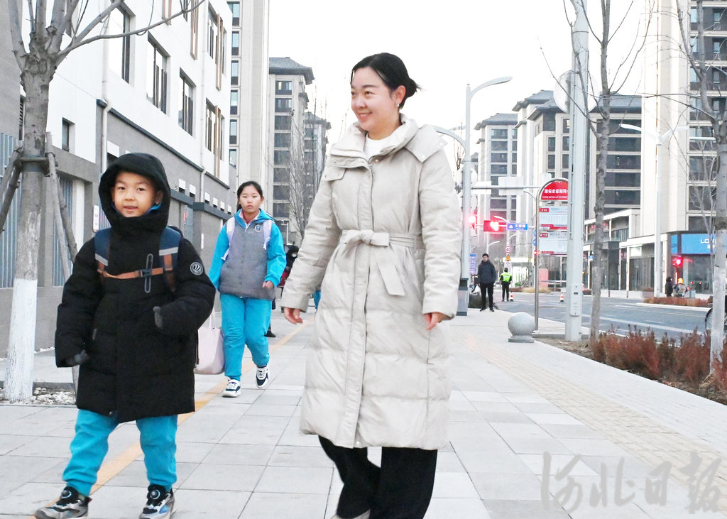 12月9日早晨,中电信数字城市科技有限公司职工王新鹏送孩子去上学。河北日报记者刘光昱摄
