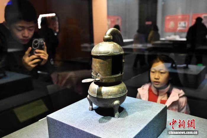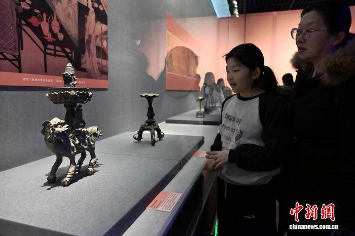 1月2日,位于石家庄的河北博物院“光耀千年——中国古代灯具文化展”吸引民众参观。中新社记者翟羽佳摄