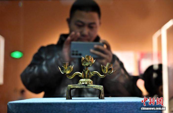 1月2日,位于石家庄的河北博物院“光耀千年——中国古代灯具文化展”现场,鎏金铜莲花烛台吸引参观者。该展览汇集国内20家文博机构的150余件文物,以中国古代灯具发展脉络为主线,梳理演变历程、解读多样造型,通过盏盏灯烛勾勒出一幅流光溢彩的历史长卷。中新社记者翟羽佳摄