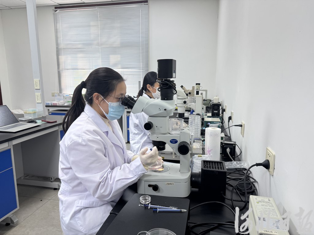 2025年12月29日,天泉公司实验室,技术人员正用显微镜筛选胚胎。显微镜下,桑葚状的胚胎在培养液中静静悬浮。