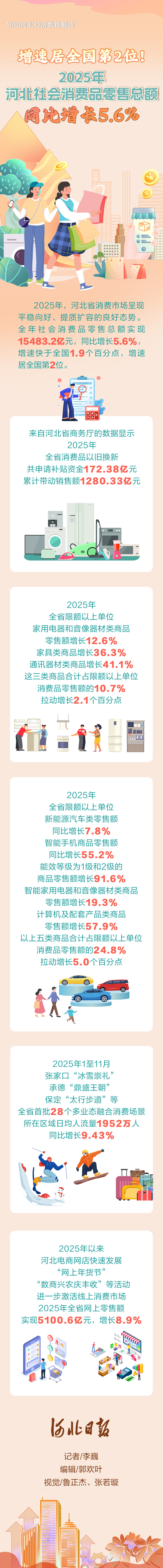 长图·2025河北经济数据解读丨增速居全国第2位!2025年河北社会消费品零售总额同比增长5.6%