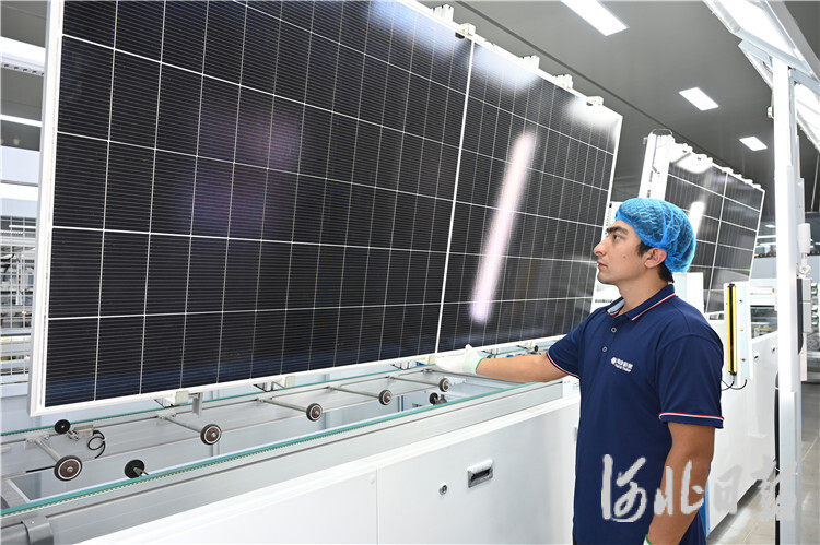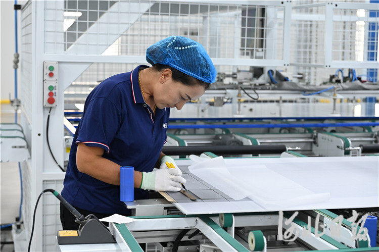 焊接、层压、装框……9月9日,位于河北巴州产业园区的巴州鸿晟新能科技有限公司(以下简称“鸿晟新能公司”)光伏组件生产车间内,自动化生产线高速运转,一块块光伏组件下线,即将运往且末、木垒等地光伏工程施工现场。