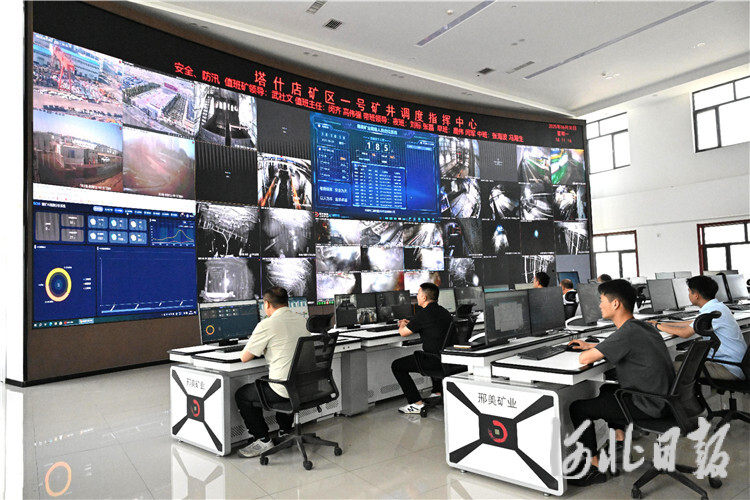 6月30日,邢美矿业智能调度指挥中心,工作人员实时监测矿井运行情况。张晓超摄