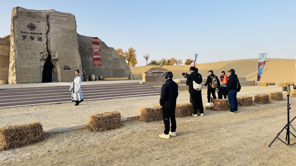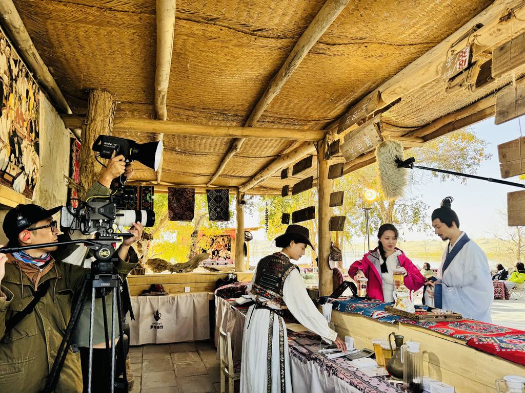 10月18日,微短剧《你好,铁门关》在新疆铁门关市开机。图为该剧拍摄现场。 河北广电影视文化有限公司供图