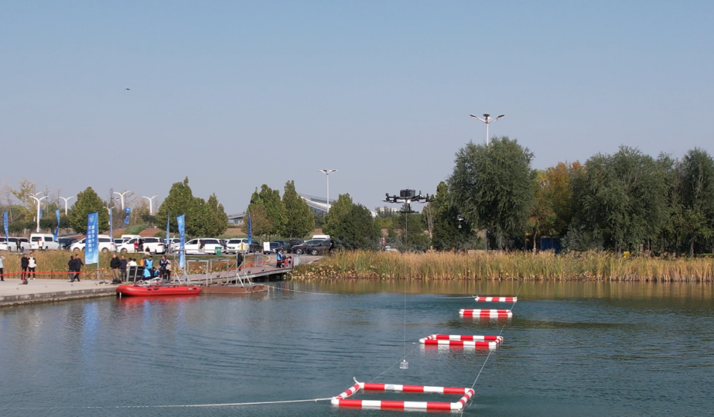 2025年河北省水文职业技能竞赛水质检测环节中,无人机进行采样。 河北省水文勘测研究中心供图