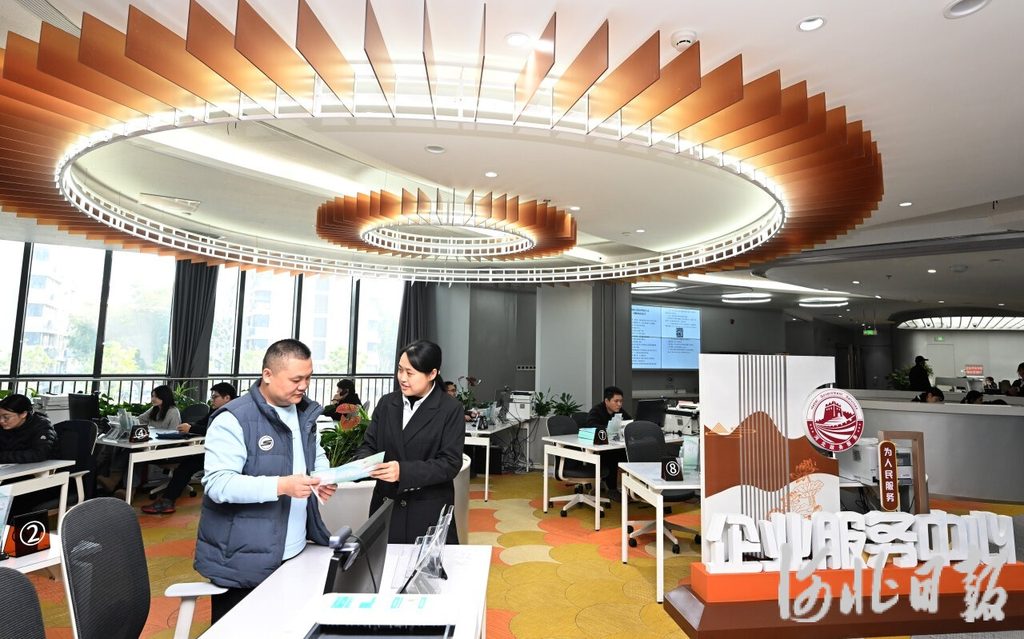 10月28日,石家庄市政务服务中心工作人员在为企业办事员讲解相关政策。河北日报记者 史晟全摄