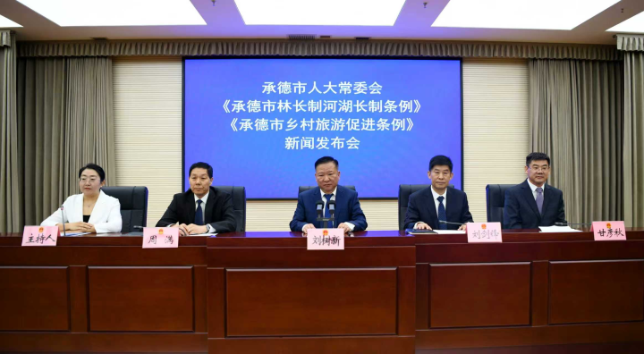 大家上午好,承德市林长制河湖长制条例、承德市乡村旅游促进条例,经2024年12月18日市十五届人大常委会第三十一次会议通过,经省十四届人大常委会第十四次会议审查批准,将于5月1日起施行。今天我们在这里召开新闻发布会,非常荣幸地邀请到各位新闻媒体朋友们和各位领导、同志们共同见证两部《条例》出台。