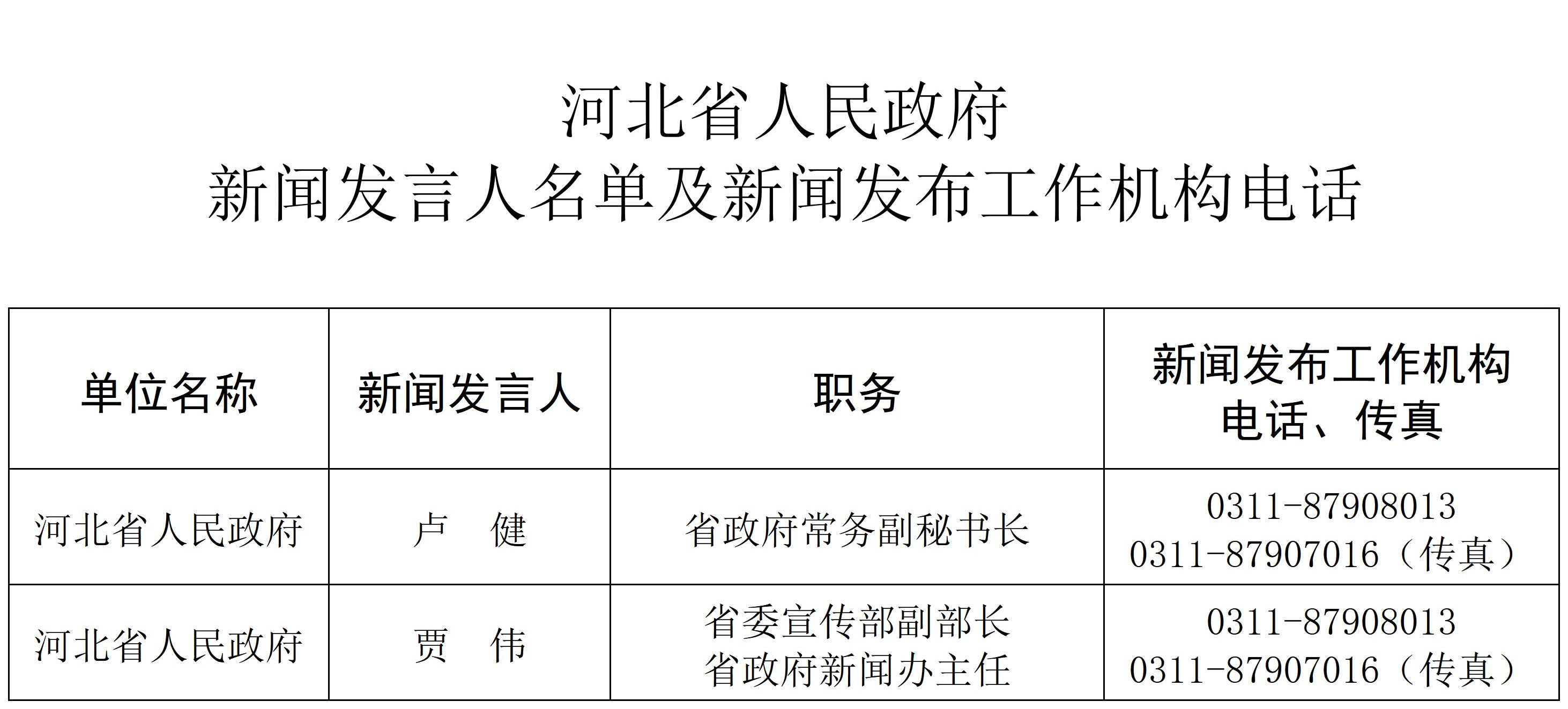 河北省人民政府新闻发言人名单及新闻发布工作机构电话