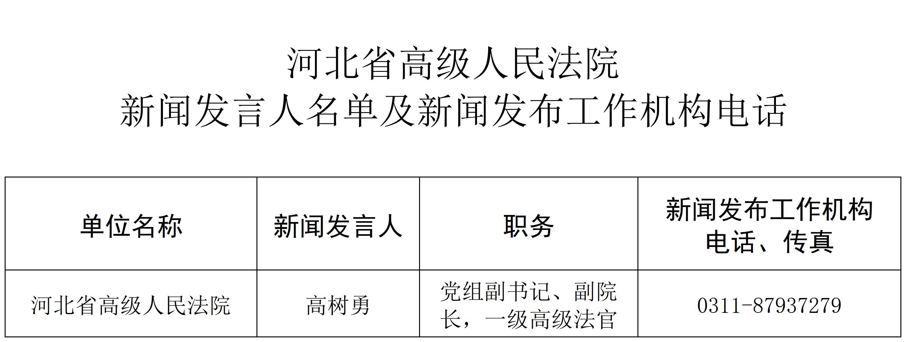 河北省高级人民法院新闻发言人名单及新闻发布工作机构电话