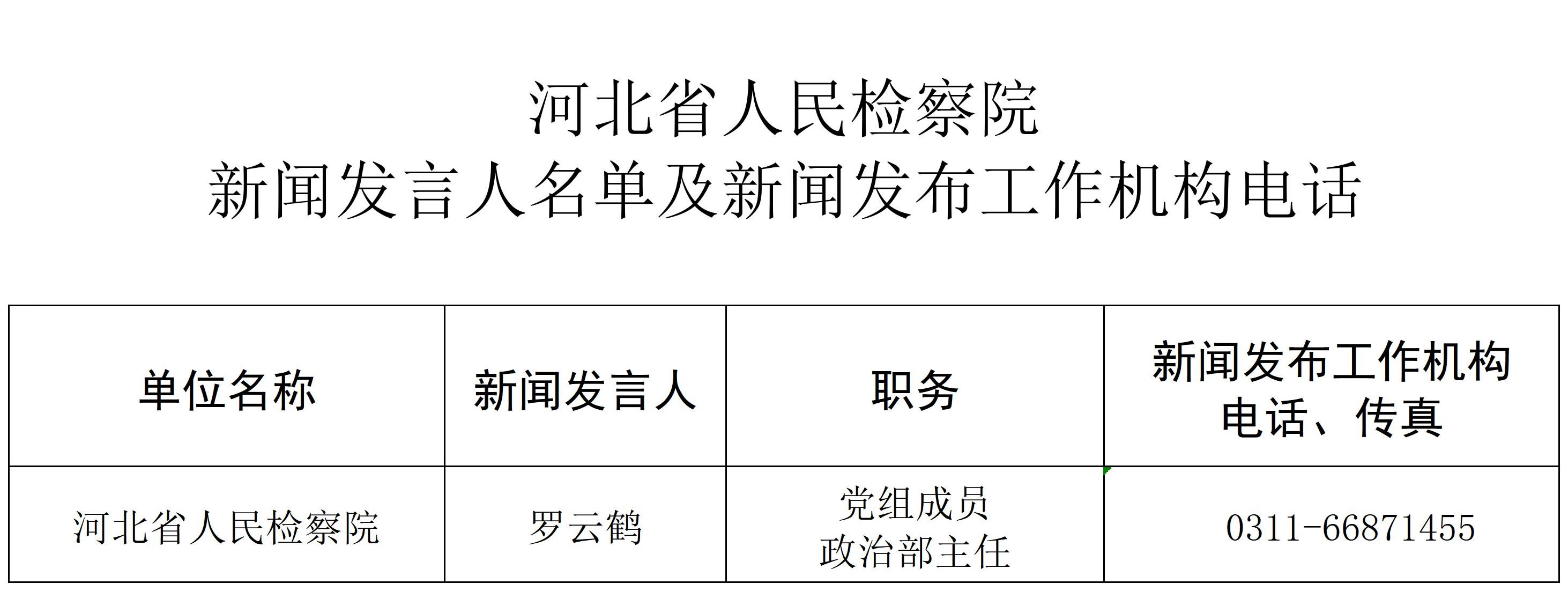 河北省人民检察院新闻发言人名单及新闻发布工作机构电话