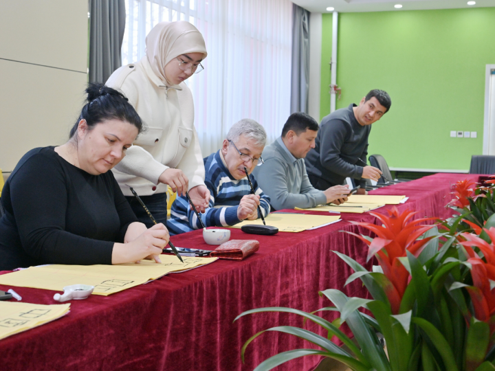 代表团参观了河北省博物院、九龙湖文化园等地,深入感受了燕赵大地深厚的历史底蕴与当代文化发展活力。在河北省博物院,代表团成员驻足于“古中山国”“满城汉墓”等展厅,通过一件件珍贵文物,了解了中国古代文明的辉煌成就与历史脉络,为中乌高校间的长期友好合作搭建了更广阔的人文交流平台。此外,代表团沉浸式体验了丝巾水拓、福字书写、拓印等中国传统文化项目。