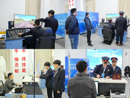 本次竞赛涵盖理论知识、技能操作、现场展示三大板块。理论考试依托题库随机抽题,内容覆盖《铁路技术管理规程》等核心专业规章;技能操作聚焦机车乘务员一次乘务作业,包含出/退勤、途中运行、数据分析三大任务模块;现场展示则由参赛队自主设计,紧扣专业特色。赛前,各代表队完成了场次抽取、规则学习等准备工作,赛中选手们沉着应考、严谨实操,充分展现专业素养。