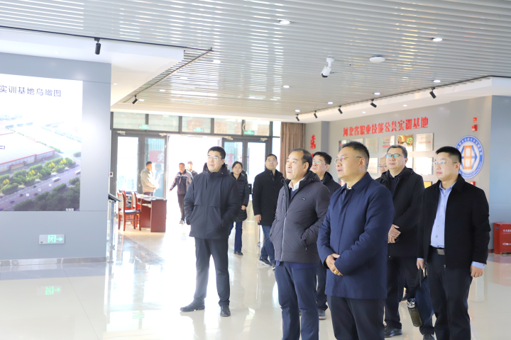 与会人员共同考察调研了河北省职业技能公共实训基地,实地感受了学校在装备制造、机电一体化、航空运输、电梯检修、现代物流、轨道交通等领域的实训设备设施资源与实力。