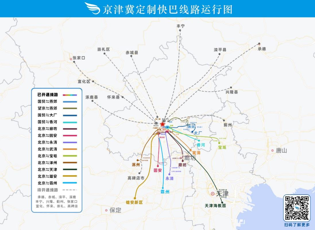 京津冀定制快巴线路运行图