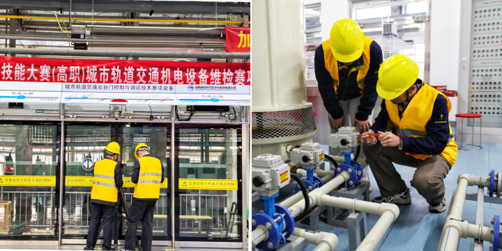 本次竞赛涵盖技能操作和赛项展示两部分。技能操作包含站台安全门故障处理和通风空调系统故障处理两个项目,全面考查参赛选手城市轨道交通机电相关设备运行与维护、故障排查与处理、相关职业素养等方面。赛项展示则由参赛队自主设计,紧扣专业特色。