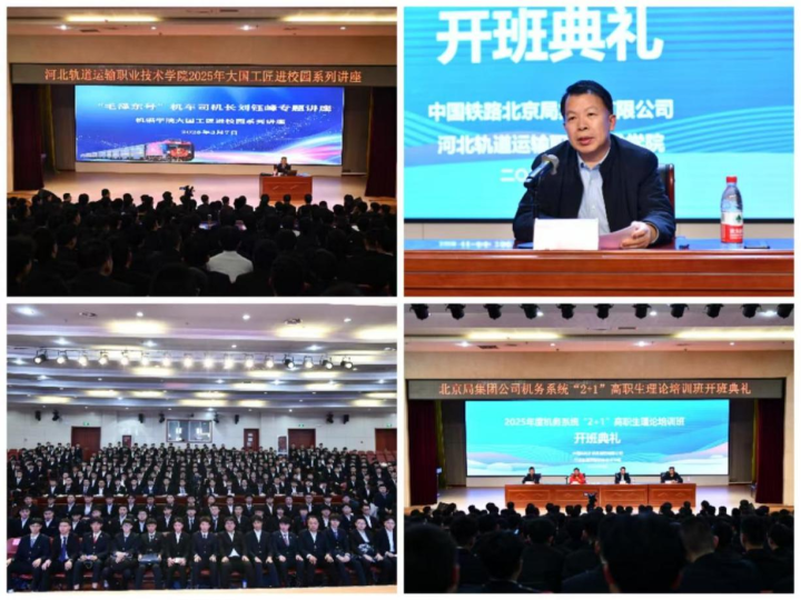河北轨道运输职业技术学院与北京局、太原局建立了长期稳定的协作共研的“2+1”培养模式。2025年,承接北京局9个工种1203人,太原局8个工种1268人的“2+1”高职毕业生岗前理论培训。首次承接北京动车段、北京车辆段3个工种125人的技能培训。
