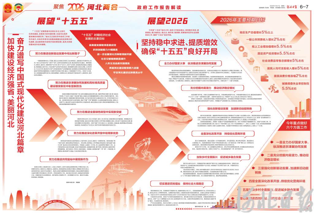 “‘十五五’时期是基本实现社会主义现代化夯实基础、全面发力的关键时期,也是河北高质量发展的关键五年。”省长王正谱在所作政府工作报告中表示,未来五年是河北发展战略叠加和优势聚合的机遇期,是动能转换与结构升级的蝶变期,是多点突破到整体跃升的关键期。