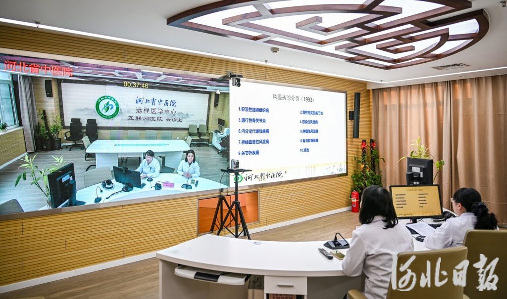 1月22日,河北省中医院医生在远程医学中心为医联体成员单位医生进行远程培训。河北日报记者 李东宇摄