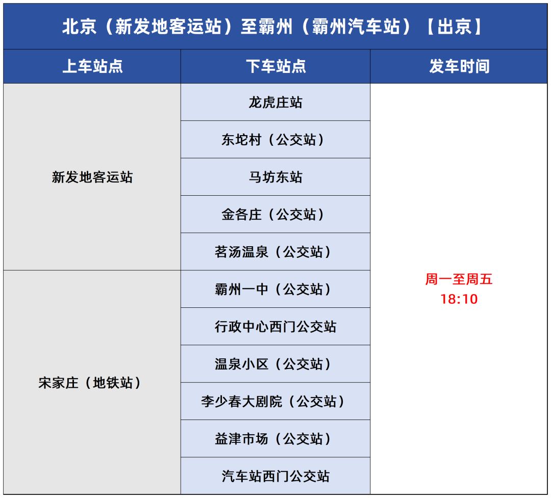 新发地客运站、宋家庄地铁站→霸州汽车站(出京线路)