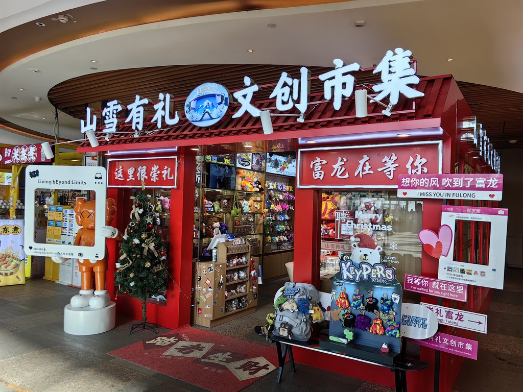 2026年1月16日拍摄的崇礼富龙滑雪场的一家文创产品店(手机照片)。新华社记者高博摄