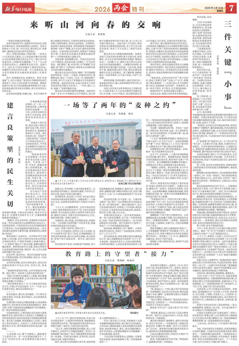 2024年全国两会,同样在人民大会堂前,这个“小麦育种天团”曾立下约定:打破地域壁垒,共享优良种质资源,联合攻克种业难题,育出更优质、更高产的小麦新品种。两年后,他们如约而至。