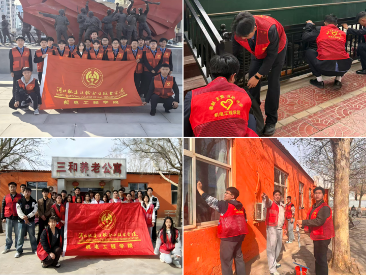 机电工程学院以“服务暖人间”为主题,组织志愿者走进解放广场铁路文化展示区,擦拭绿皮火车车厢与红色雕塑,在劳动中感悟铁路文化与红色精神;前往三和社会养老服务中心开展敬老服务,用实际行动传递温暖。
