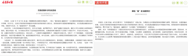 航空学院在做好校园清扫、主题板报、团课学习等“常规动作”的同时,更以特色项目点亮雷锋精神。2026年1月份以来,学校团委积极响应团省委、省直团工委号召,统筹推进“小橘灯”助残接力计划系列活动。学雷锋月期间,航空学院志愿者团队作为主要力量,深入参与其中,走进特殊教育学校,用陪伴点亮微光、用温暖守护童心,此项活动受到《石家庄日报》和《燕赵晚报》的专题报道,成为我校学雷锋活动的一张亮丽名片。
