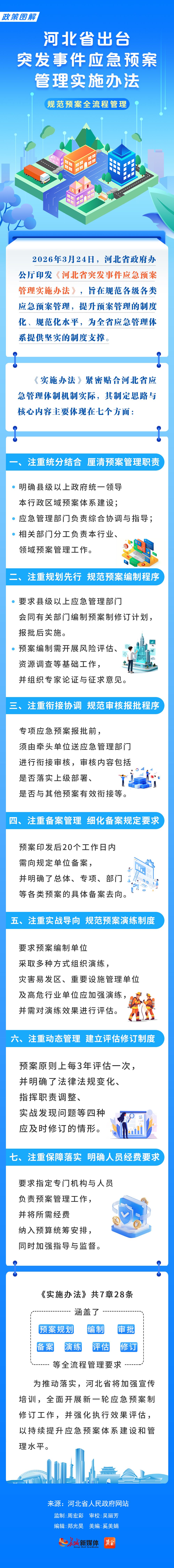 政策图解|河北省出台突发事件应急预案管理实施办法 规范预案全流程管理