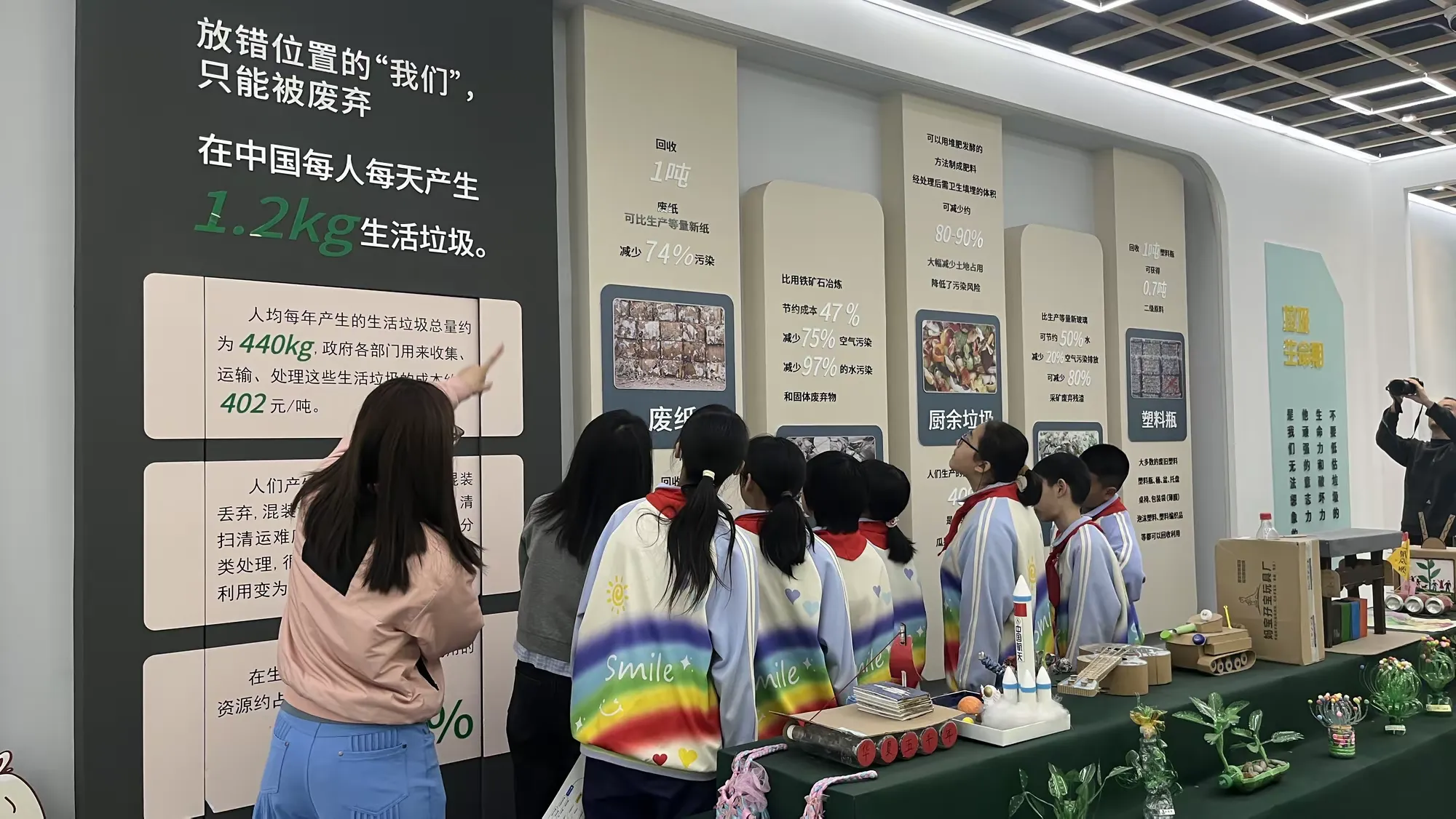 展厅内,讲解员结合小学生认知特点,用通俗语言和案例,讲解四大类垃圾的分类标准、易混要点及垃圾处理流程,通过图文展板、实物模型,让大家直观感受垃圾“变废为宝”的价值,深刻理解“垃圾是放错地方的资源”。