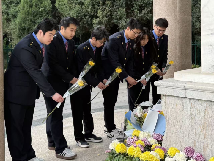 活动现场庄严肃穆,师生们庄严肃立,奏唱中华人民共和国国歌。默哀结束,师生代表缓步拾级而上,将花篮轻轻敬献于革命烈士纪念碑前,大家怀着崇敬之情向长眠的英烈传递着后辈的缅怀与敬仰。洁白的菊花寄托着无尽哀思,师生们驻足凝视,深切感受到和平的来之不易。